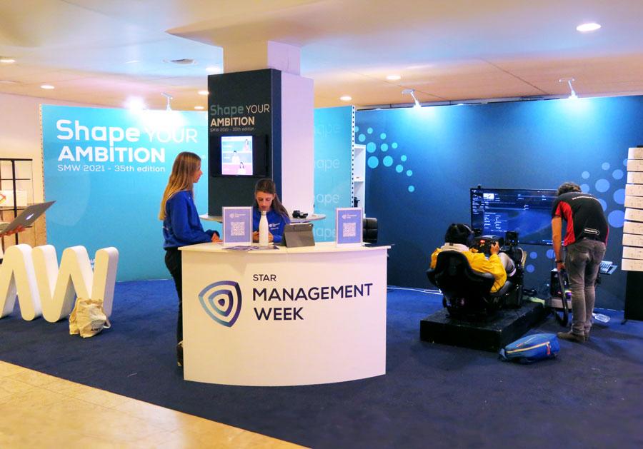 Tijdens de STAR Management Week is er ieder jaar ook een mooie stand aanwezig die ontworpen wordt door The Dare Company. In 2023 was het thema ‘Engage, Create, Inspire.’. Omdat deze drie pijlers erg belangrijk waren voor het evenement en de organisatie, hadden onze designers iets om mee te werken! Ze hebben de stand (uiteraard) weer compleet ingericht met de huisstijl van STAR, waarbij verschillende leden van de organisatie afgebeeld zijn in een uitgesneden vorm die ook in het logo terugkomt. Daarbij zijn er vier muren vormgegeven; één muur vormt het hoofd en staat haaks op de andere drie, die de drie pijlers vertegenwoordigen. De STAR beursstand is een goed voorbeeld van hoe we een idee uit kunnen dragen met driedimensionale vormgeving!