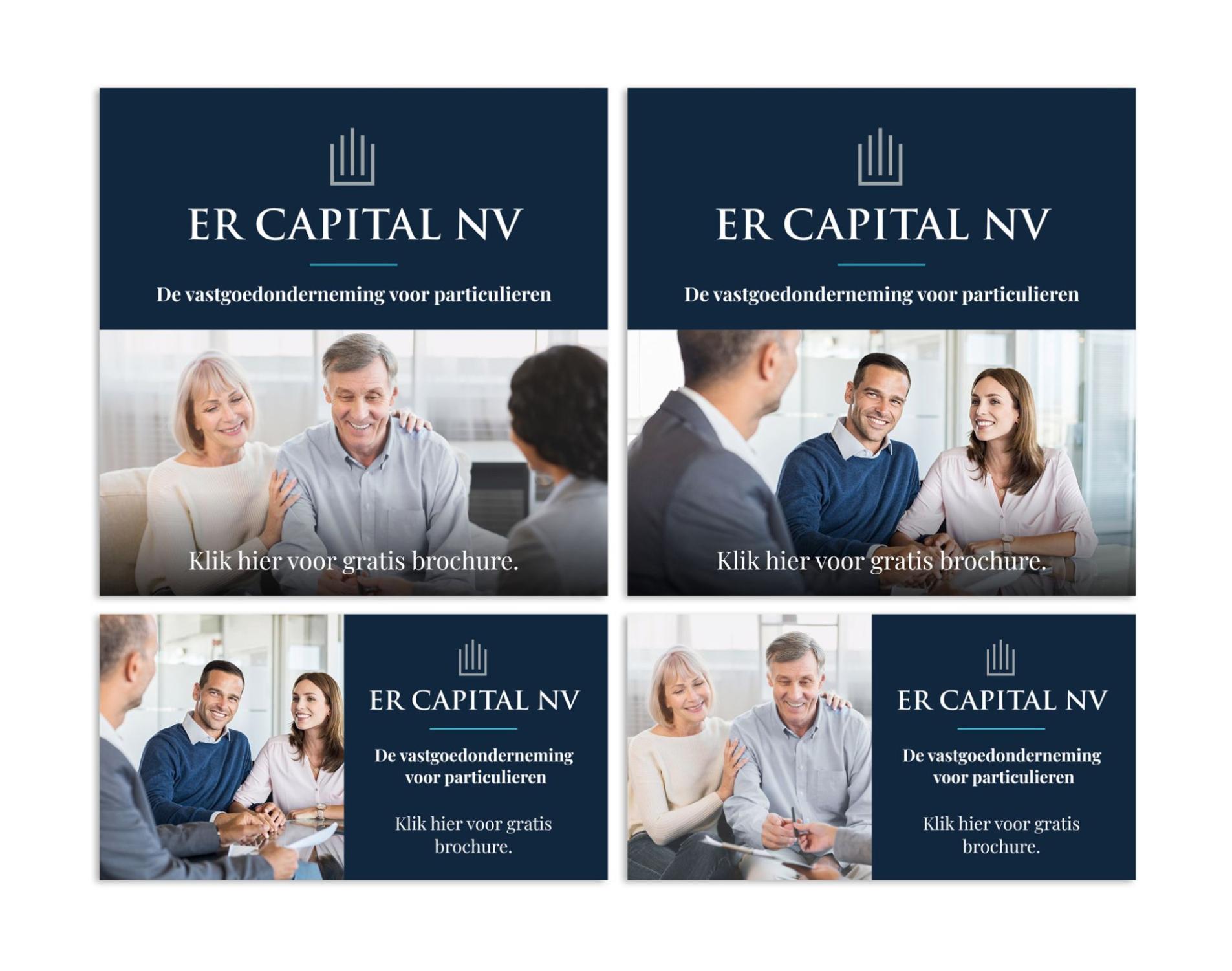 Voor de SEA campagne die we voor ER Capital op mochten zetten hebben we mooie display advertising banners ontworpen die Google bovenin of naast een webpagina laat zien. Deze moeten natuurlijk in verschillende maten mooi blijven – niet alle ruimtes op de verschillende sites zijn immers even groot of in dezelfde vorm.