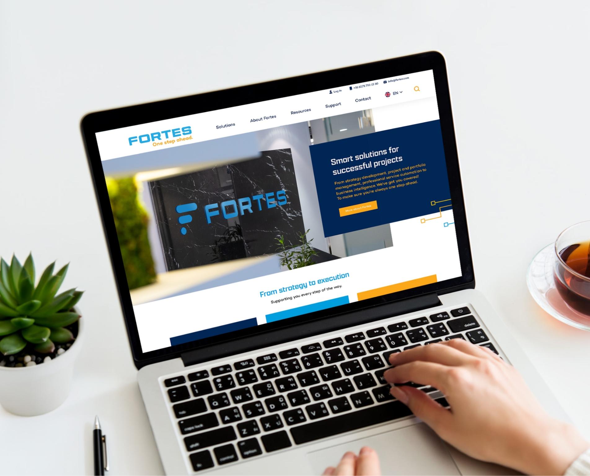 De website van Fortes is ontworpen en ontwikkeld als een verlengstuk van de huisstijl. Door het gebruik van de kenmerkende kleuren en herkenbare beeldmerkjes, gecombineerd met subtiele animaties, ontstaat een dynamische en eigentijdse uitstraling. De website biedt ruimte aan de verschillende producten van Fortes en maakt complexe informatie toegankelijk en overzichtelijk voor de gebruiker.