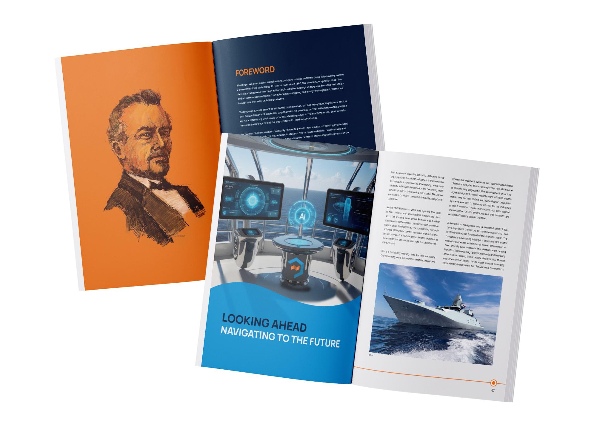 Een goed verhaal verdient een sterke vorm. Voor het 150-jarig bestaan van RH Marine hebben we een speciaal jubileum magazine samengesteld en hun verhaal vertaald naar een helder en visueel geheel, met een overzichtelijke tijdlijn als rode draad door het hele magazine. Door middel van interviews en zorgvuldig uitgewerkte redactionele content brachten we het verleden, heden en de toekomst van RH Marine samen. Het resultaat is een magazine die niet alleen hun rijke historie showcased, maar ook laat zien waar RH Marine voor staat: kennis, vakmanschap en vooruitgang binnen de maritieme sector.