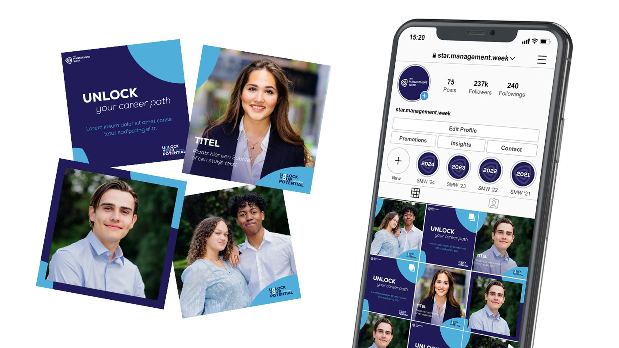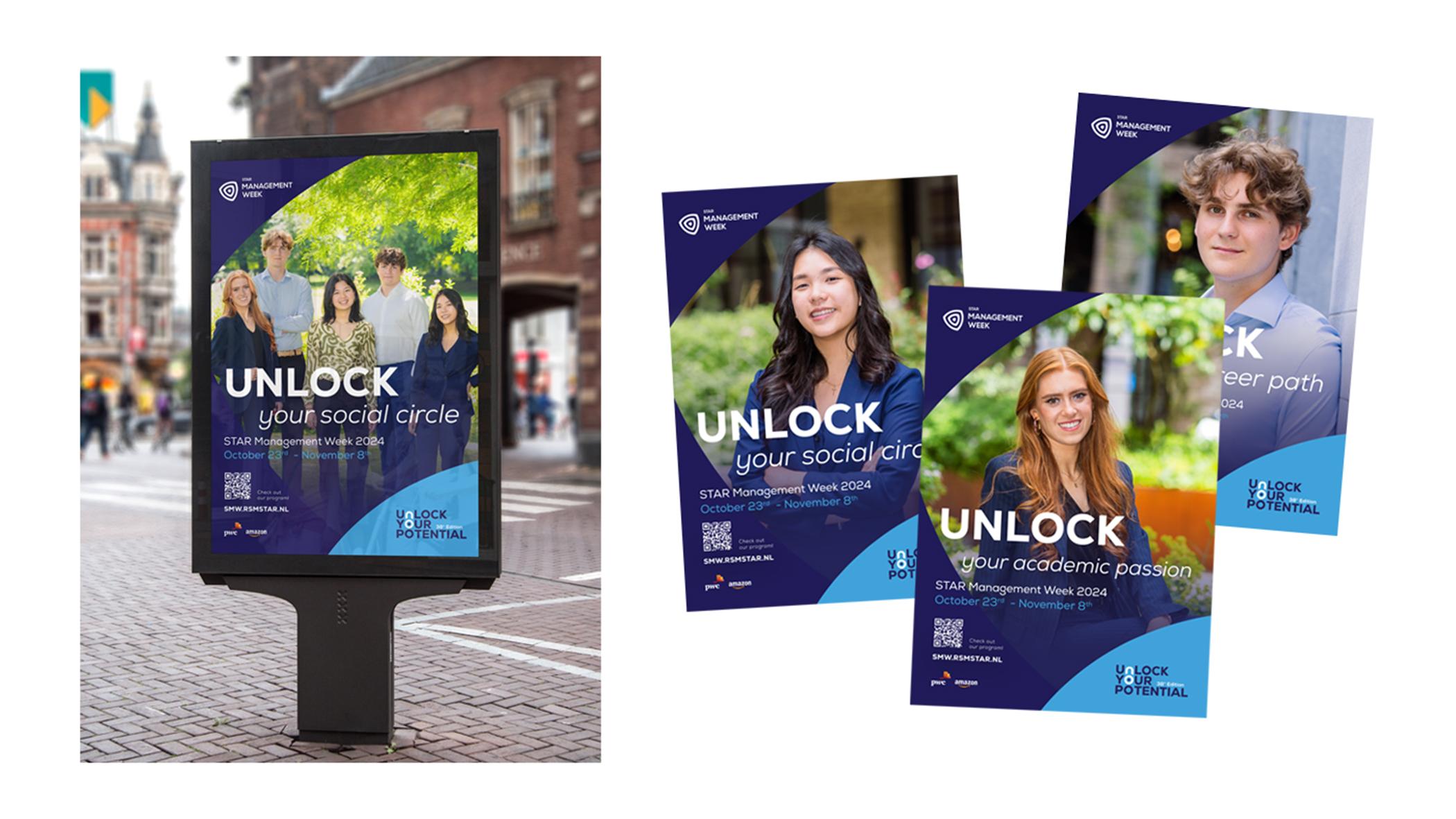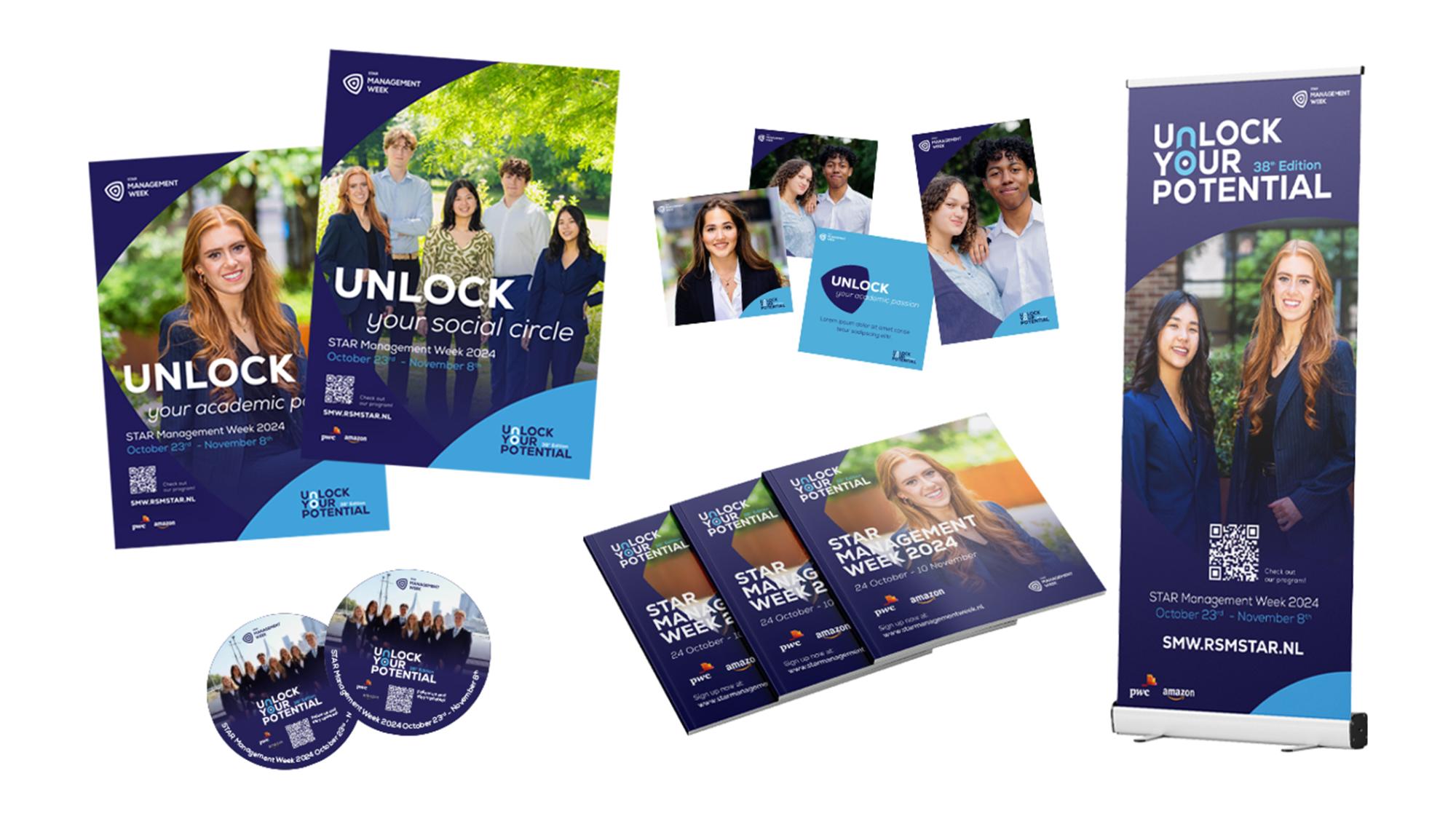 Voor de 2024-editie van STAR Management Week ontwierpen wij het Unlock Your Potential-logo met een slotje in de ‘n’ en ‘o’ dat opent in de animatie, en verfijnden we de huisstijlkleuren voor een sterke, herkenbare look & feel.